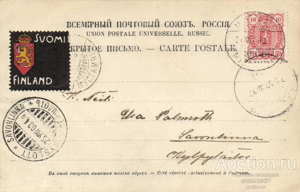 ПОЧТОВАЯ КАРТОЧКА РУССКАЯ ФИНЛЯНДИЯ