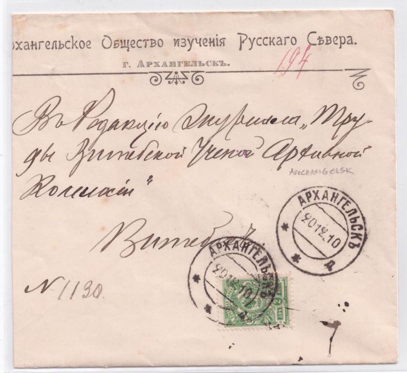 ПОЧТОВЫЙ КОНВЕРТ . АРХАНГЕЛЬСК