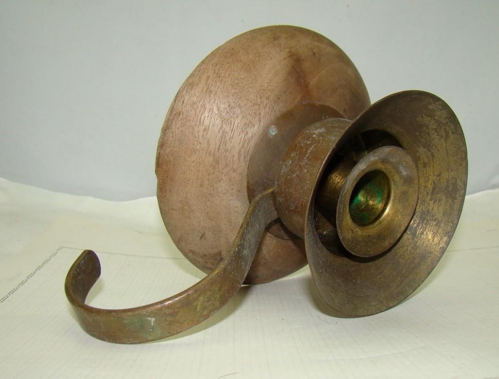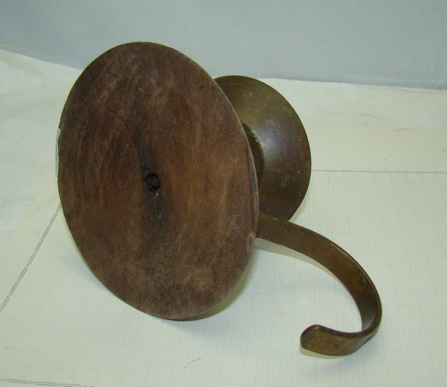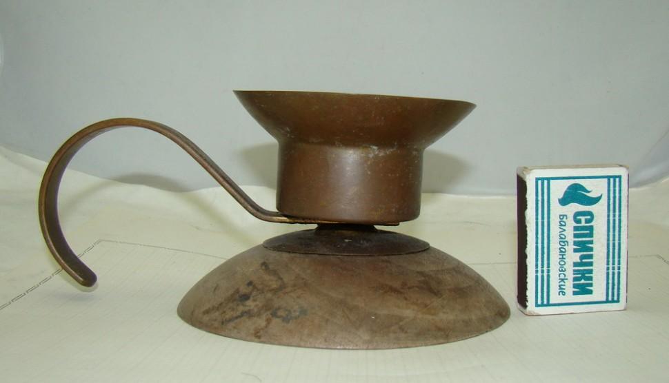 Медь, дерево. Высота 8см, диаметр основания 12см.
