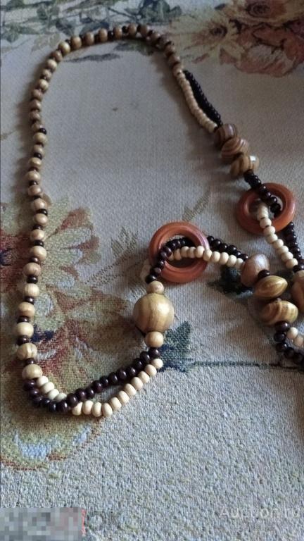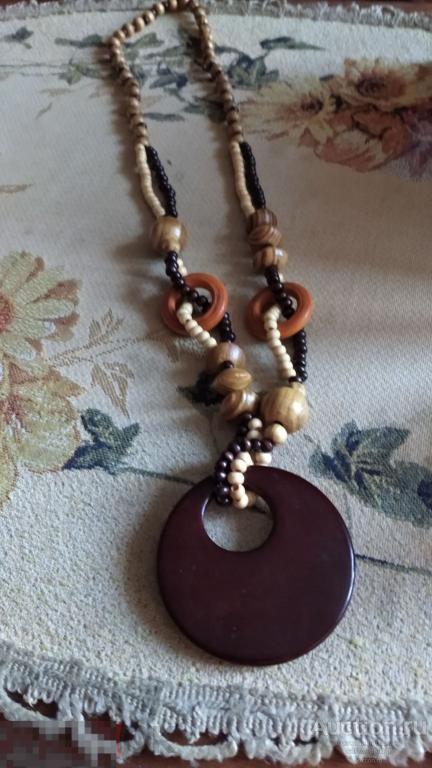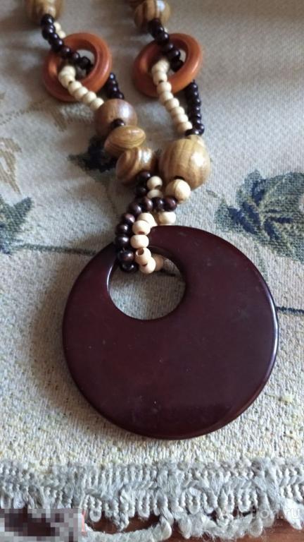 Материалы:дерево(круг,бусины на ожерелье)