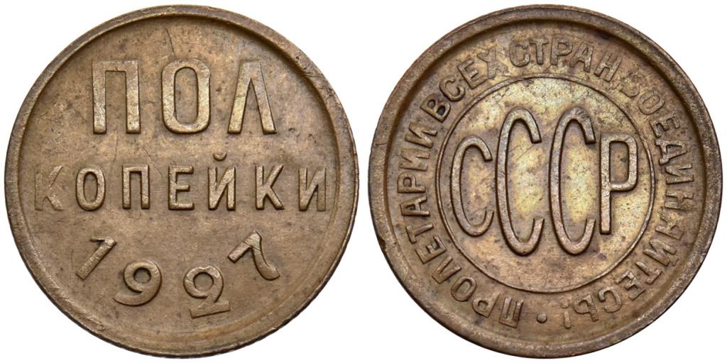 ПОЛ КОПЕЙКИ 1927 года. Медь 1,66 г. Сохранность AU.