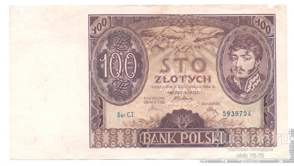 Польша 100 злотых 1934 Купите "Польша 100 злотых 1934" по цене 430a.