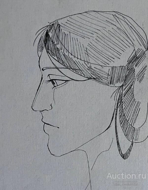 Портрет дамы. Выполнено на маленьком холсте линером