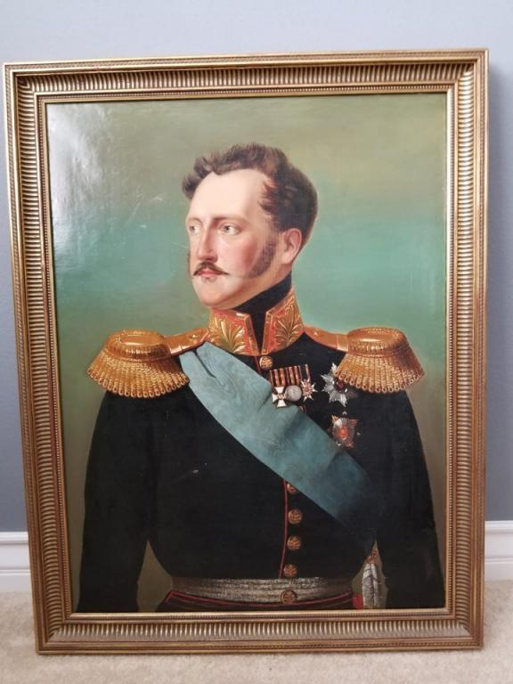 Портрет Николая I из Эрмитажа. Был куплен в 1993 году в Санкт-Петербурге, есть квитанция о покупке (куплена легально) в 1994 году была отреставрирована в Париже в знаменитом антикварном отеле Drouot и оценена в 100000$. На картине имеется печать королевской школы придворных живописцев царя, которую можно увидеть с помощью рентгена. В данный момент картина находится в Калифорнии. Возможна встреча в Париже.