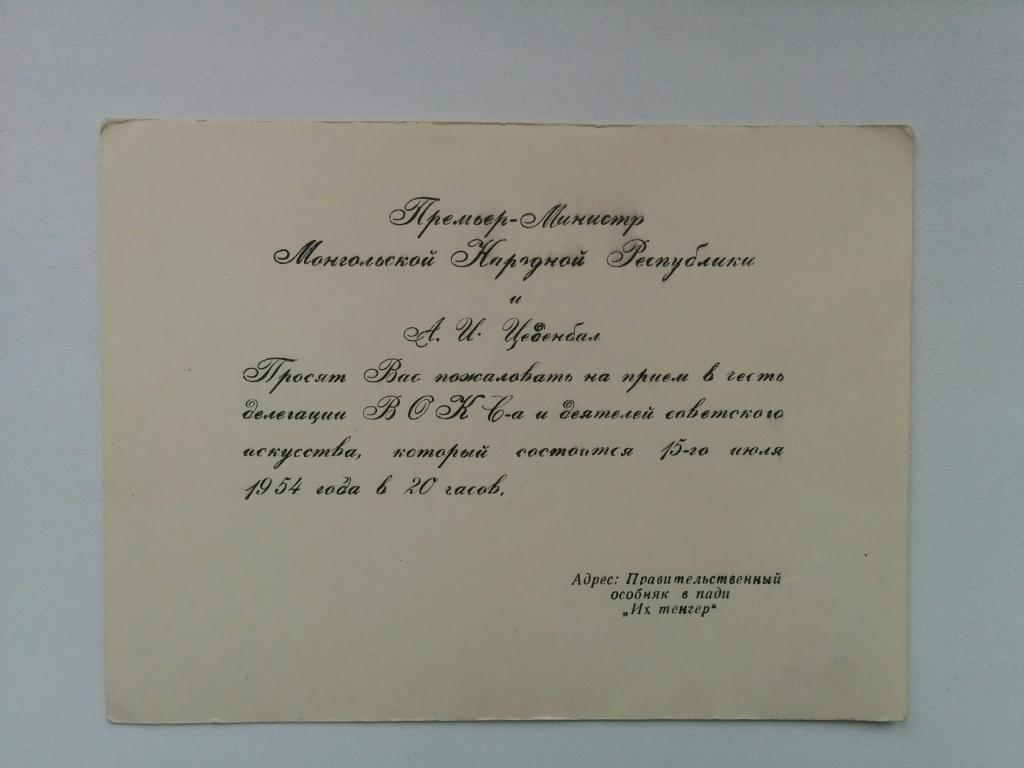 Приглашение. СССР. МНР. 1954 г.