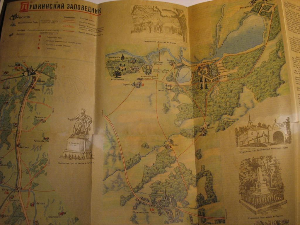 Пушкинский заповедник, туристская схема. Состояние на