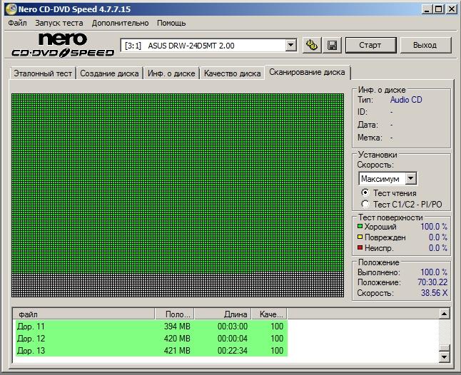 царапины; ошибок чтения нет (проверен программой Nero CD-DVD Speed