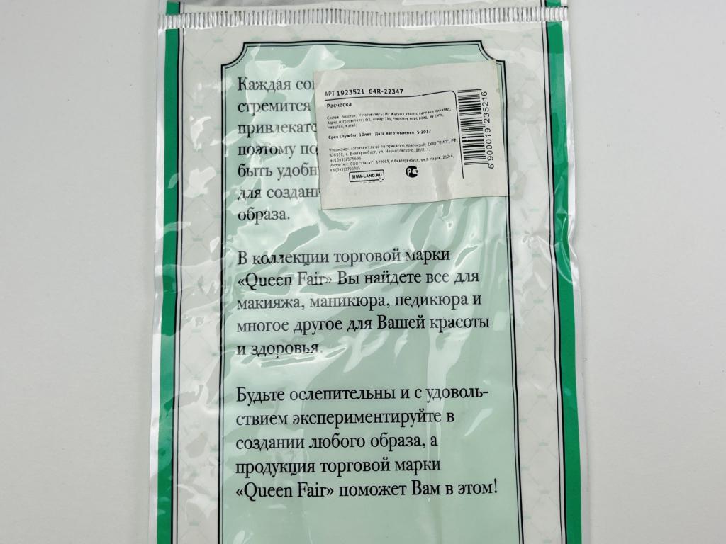 1 расческа. 12,5 х 3,5 см.