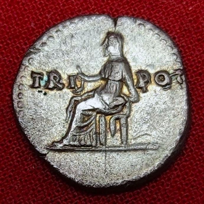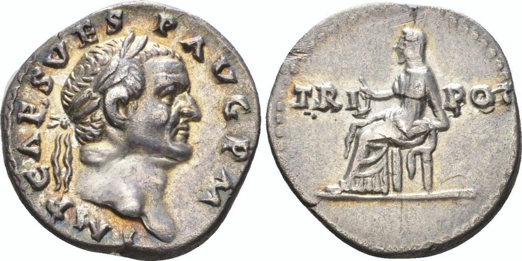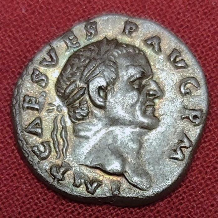 Предлагаю интересный денарий Веспасиана ВЕСТА, отчеканенный на монетном дворе в Риме в самом начале его правления в 70 году. На аверсе этого денария отчеканен красивый портрет Веспасиана в красивой золотистой патине с легендой IMP CAES VESP AVG P M, а на реверсе изображена сидящая на троне богиня Веста с легендой TRI POT. Вес 3,24 гр., диаметр 18 мм. Ссылка RIC 46. Монета сфотографирована с большим увеличением.
