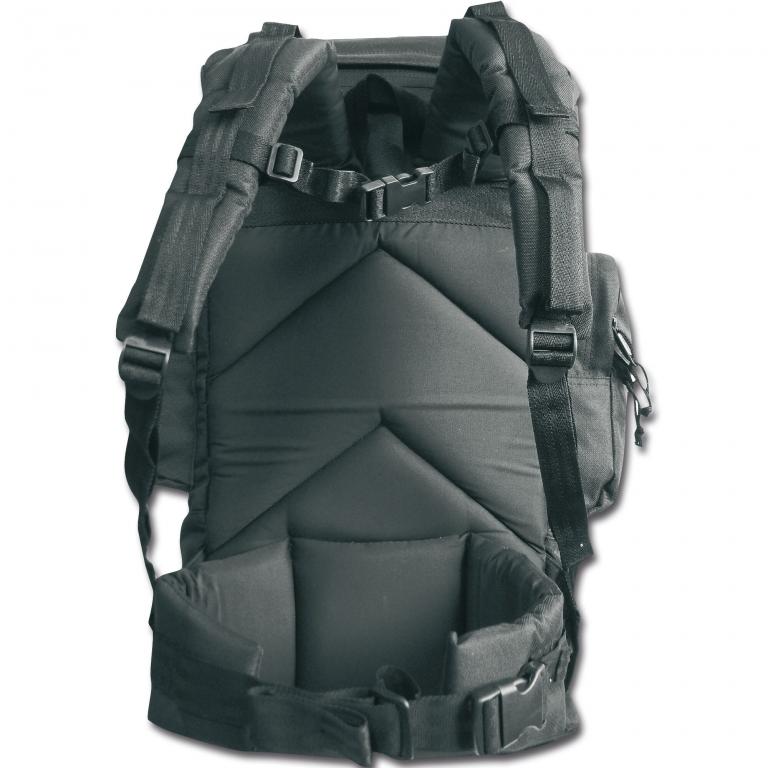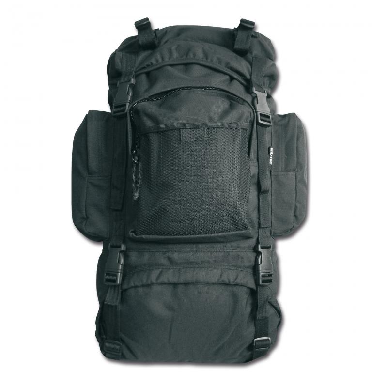 The Backpack Commando is a classic hiking backpack with three outside pockets and a mesh pouch. The main compartment has a snow skirt and a cover with zipper pocket for maps, documents, etc. An aluminum frame, padded shoulder straps with chest strap and a simple waist belt round out this backpack. Material: 100% polyester with PVC coated lining. Height: 55 cm Width without side pockets 30 cm Volume: 55 liter Properties Color: Black Capacity of the backpack: 55 l Weight: 1.9 kg Manufacturer: Mil-Tec Categories: Backpacks State: New EAN: 4046872175282