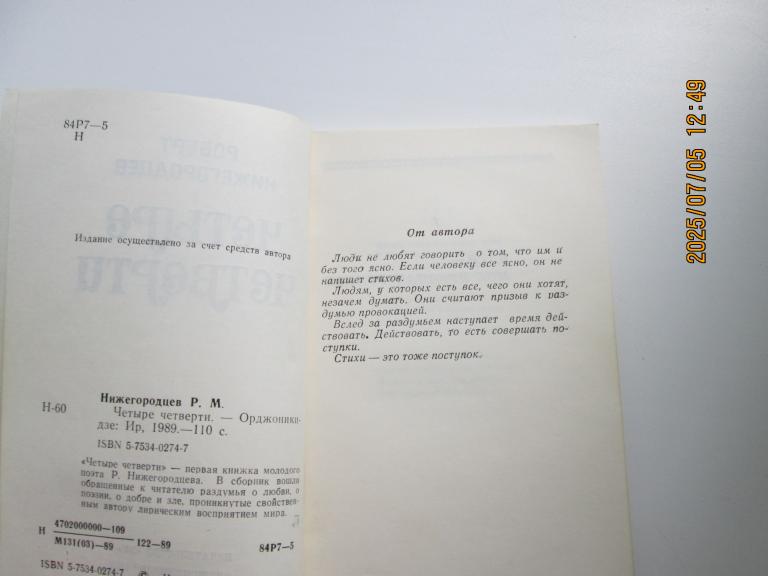 Нижегородцев Роберт Михайлович "Четыре четверти". Библиографическая редкость. Состояние на фото.