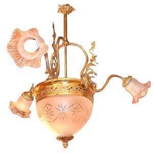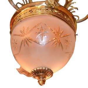 Бронза, стекло, золочение. Очень изящная работа. Люстра в великолепном коллекционном состоянии, полностью оригинальный сбор. Массивная. Высота около 60 см. Оригинал.