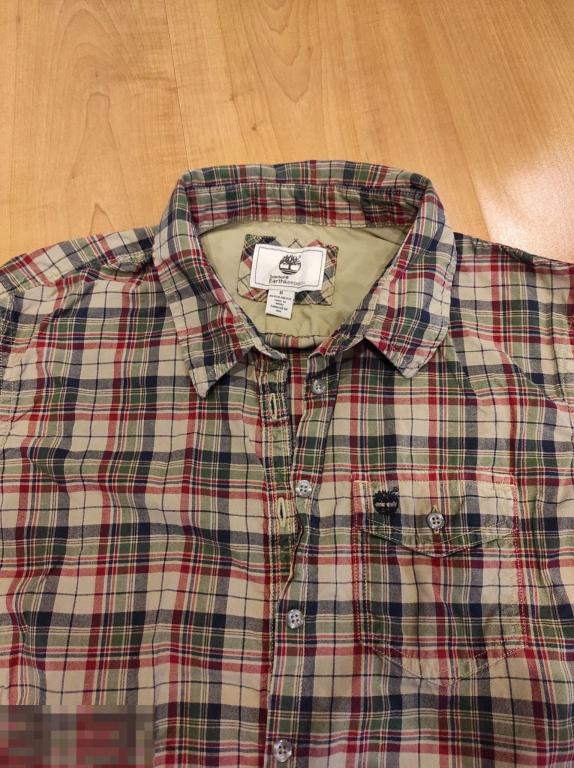 Мягкая х/б рубашка Timberland, клетка, красивое сочетание цветов. S На размер 44- 46. 500 руб