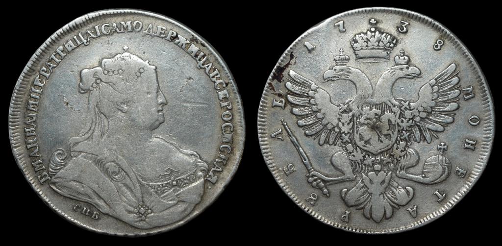 Рубль 1738 СПБ. Слаб
