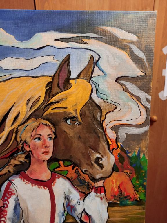 Картина выполнена акрилом на холсте с использованием черных маркеров. Без покрытия, без оформления