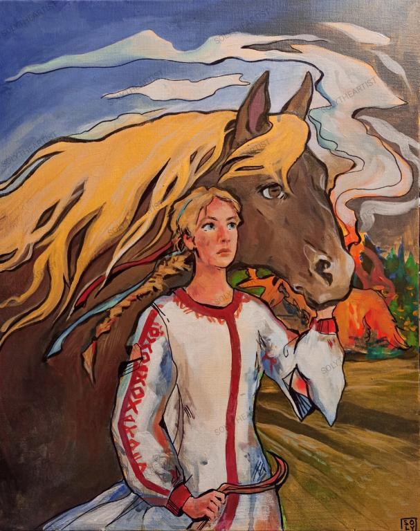 Сюжет представляет собой моё видение фразы о женщине "Коня на скаку остановит, в горящую избу войдёт"