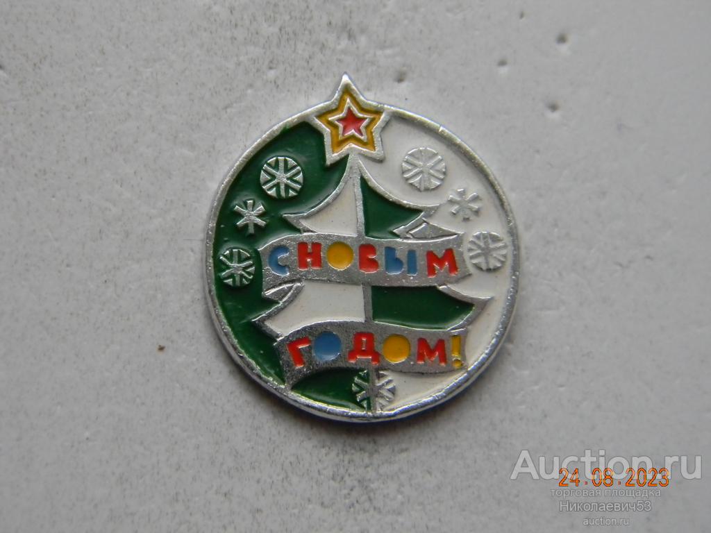 Значок С Новым годом, выпуск СССР, легкий металл, заколка, клеймо ШМ. Состояние на скане
