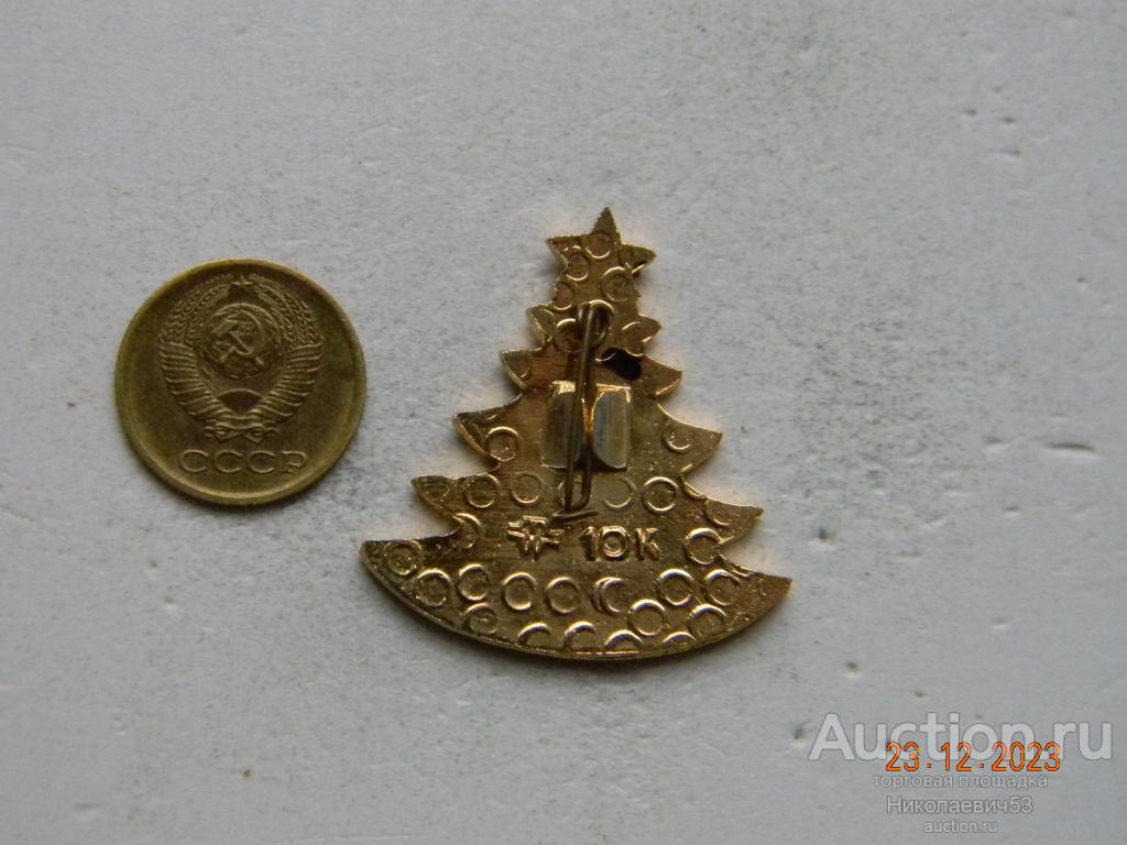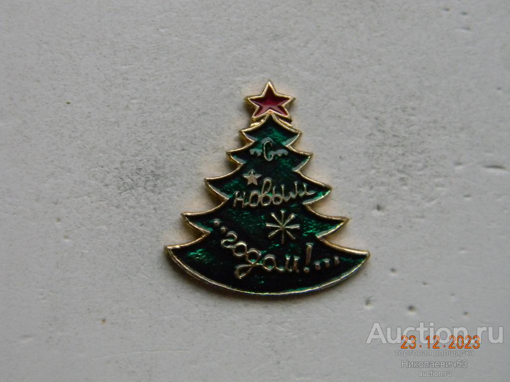 Значок С Новым годом, выпуск СССР, легкий металл, заколка, клеймо ШМ. Состояние на скане