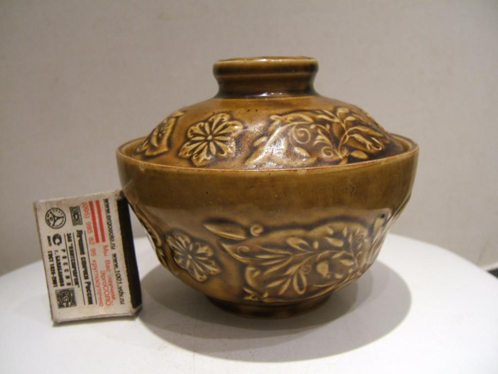 Предлагаю вашему вниманию - Масленка (сахарница) Завод не определен. На крышке скол с лицевой стороны не виден (см. фото). Красивый рельефный рисунок. Высота 10 см, диаметр 11,5 см.