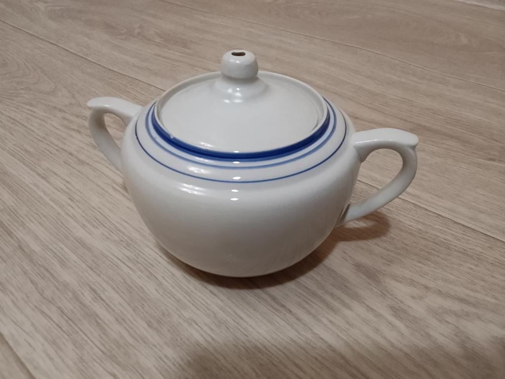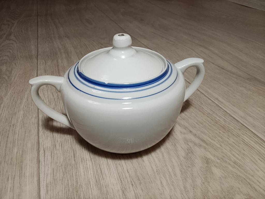Сахарница РСФСР послевоенный период ,, Сталинка,, В одном из эпизодов фильма Советского периода на столе Сталина была точно такая же. Чёткое клеймо производителя. Очень красивый предмет в вашу коллекцию. Состояние хорошее, есть слегка заметный не значительный скол по краю.