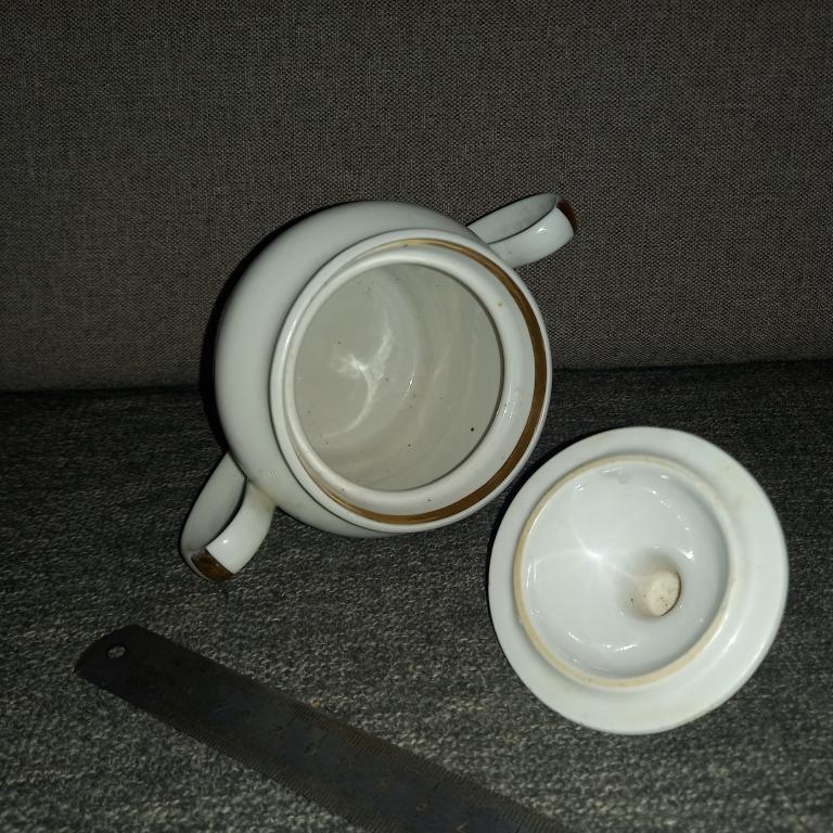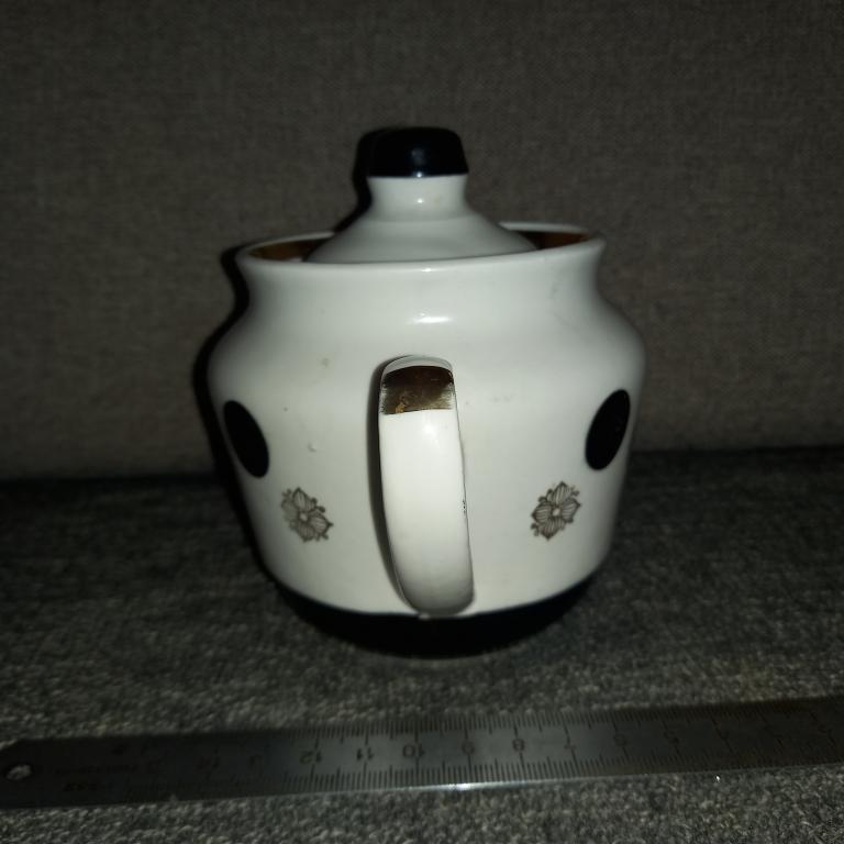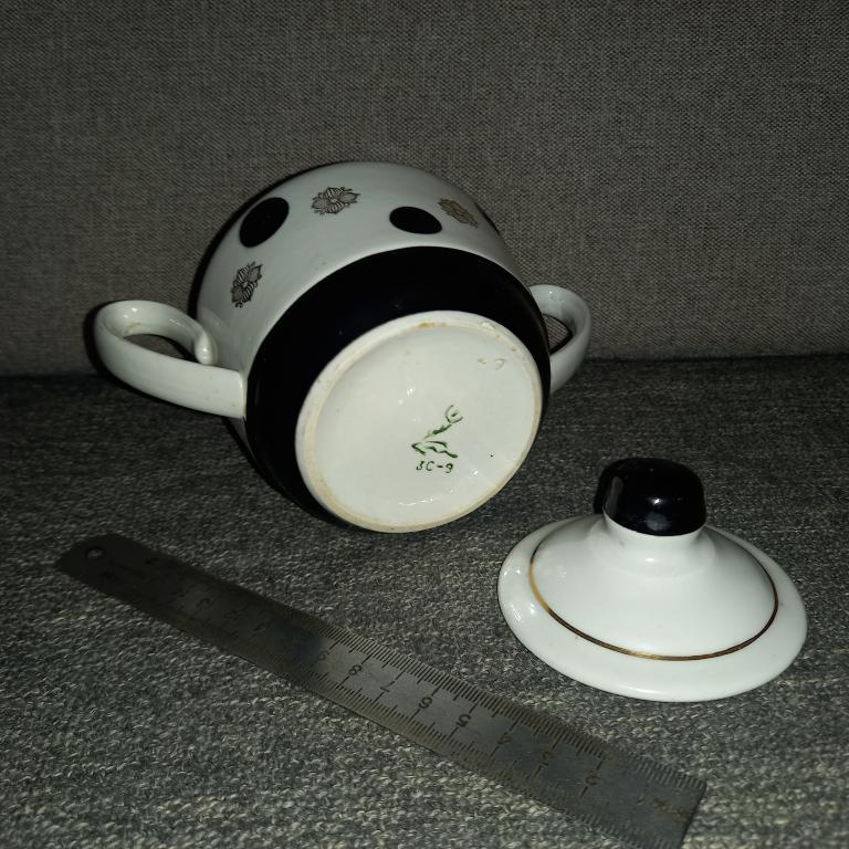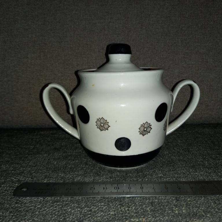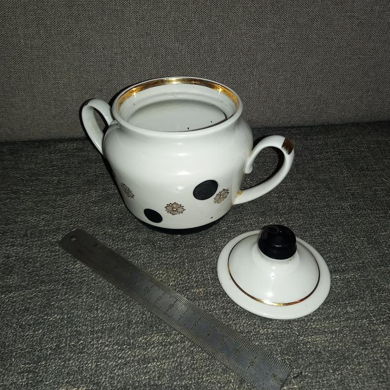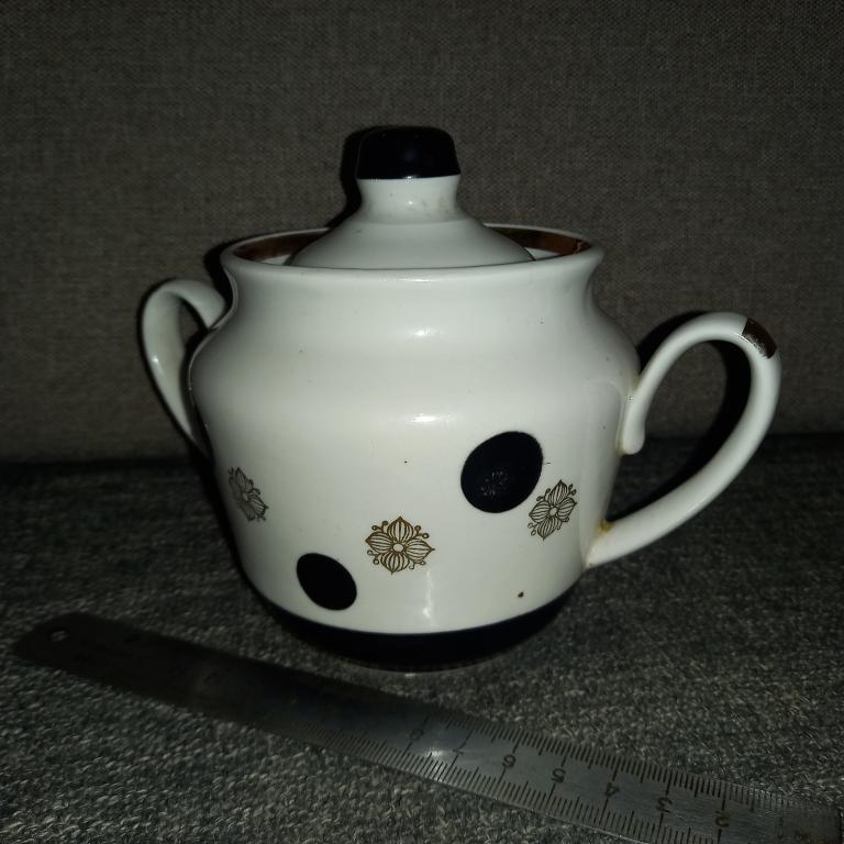 Старая сахарница с деколью. Без сколов и трещин! Есть небольшая подкраска полета черной краски! 80-е гг.
