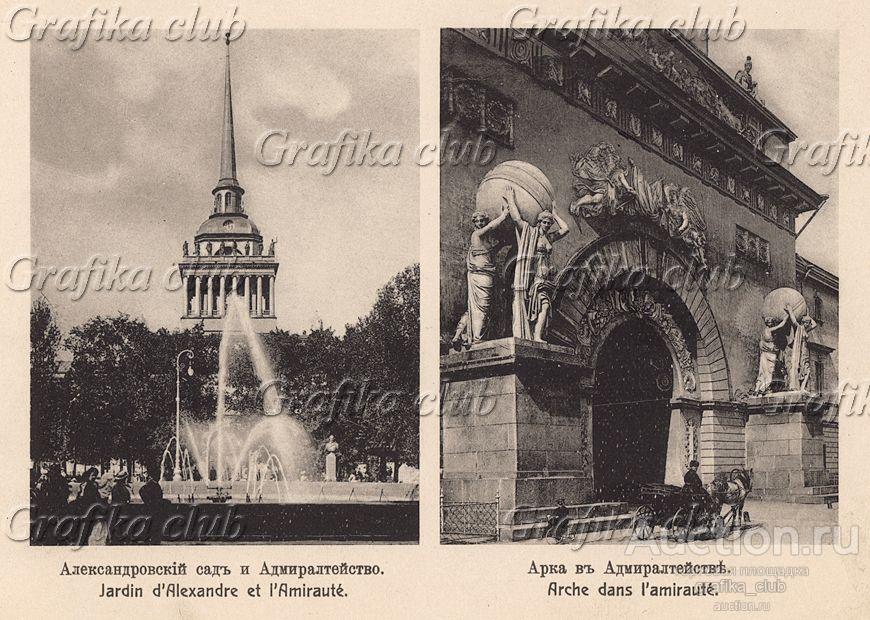Санкт-Петербург. Александровский сад, Адмиралтейство и арка в Адмиралтействе. Альбом "Санкт-Петербург". Стокгольм, нач. 20 в.