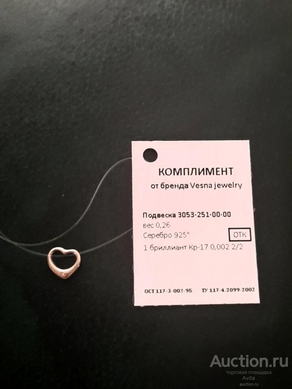 Новая серебряная подвеска Vesna Jewelry, вес 0,26 гр, вставка 1 бриллиант Кр-17 0,002 2/2. Отправка Яндекс доставкой по полной предоплате, почтовые расходы за счет покупателя. Без торга!