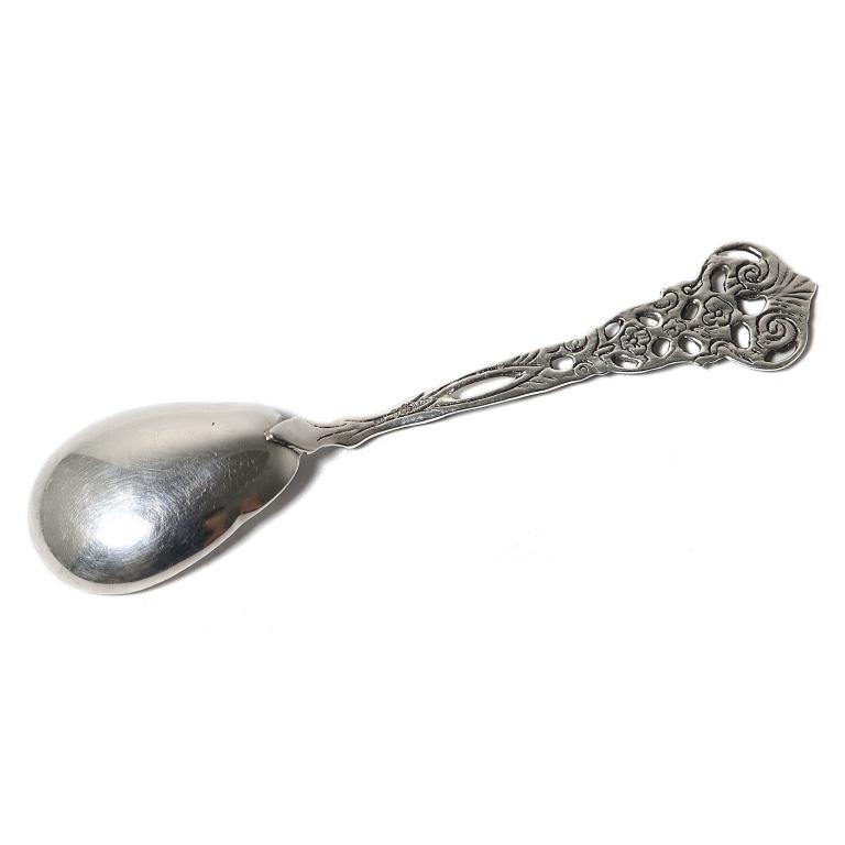 Silver serving spoon.