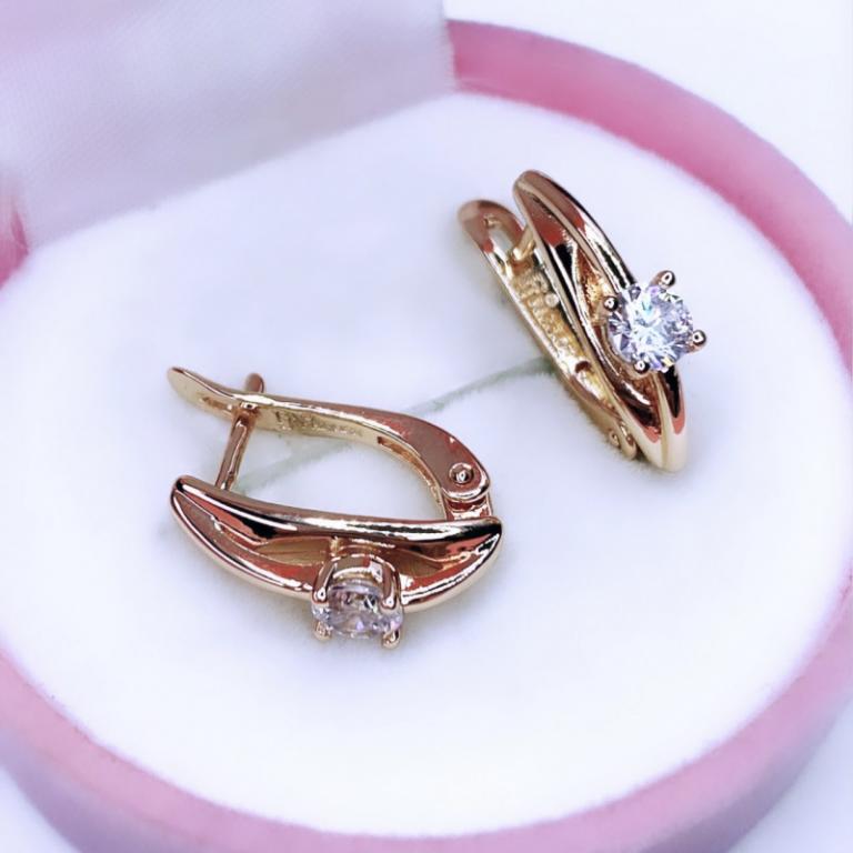 Классические серьги с надёжным английским замком имеют изящную продолговатую форму, которая украшена многогранным сверкающим минералом средних размеров. В таком украшении вы будете себя чувствовать комфортно и уверенно, ведь лаконичность в сочетании с изяществом всегда остаются трендом ювелирной моды.