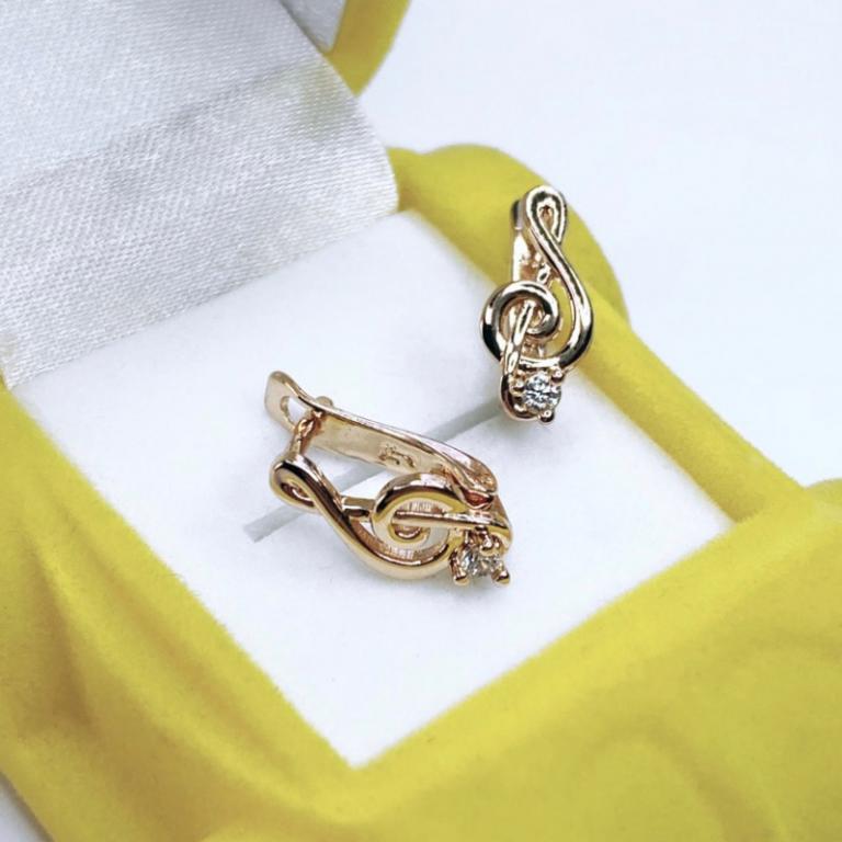 Необычные серьги в форме скрипичного ключа подойдут не только юным любительницам музыки. Невероятно нежные и милые, с тонким акцентом из сияющего небольшого минерала, они станут любимым украшением романтических и нежных натур. Такие серьги будут отлично сочетаться с кольцом арт. К187