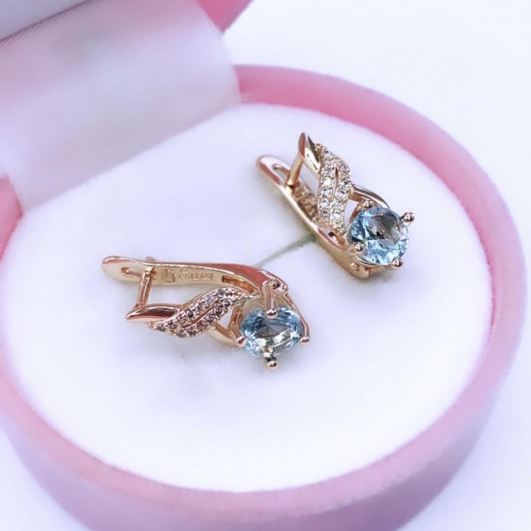 Невероятно нежные серьги, за счёт сочетания утончённой формы, лазурного минерала и россыпи прозрачных цирконов, подойдут представительницам прекрасного пола любого возраста. Чистота и небесный цвет центрального камня в композиции этого украшения, удачно подчеркнёт красоту лица и сияние глаз его обладательницы. Такие серьги заслуживают восхищения и комплиментов.