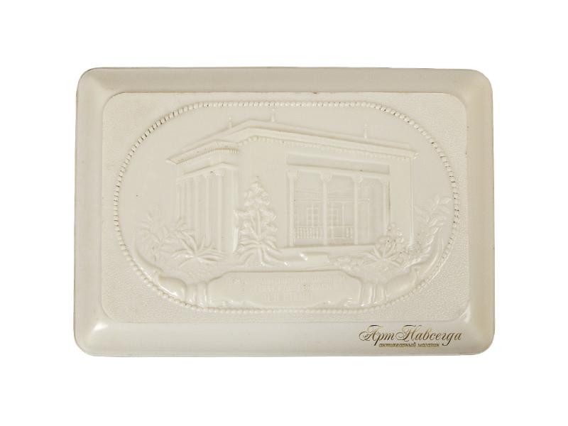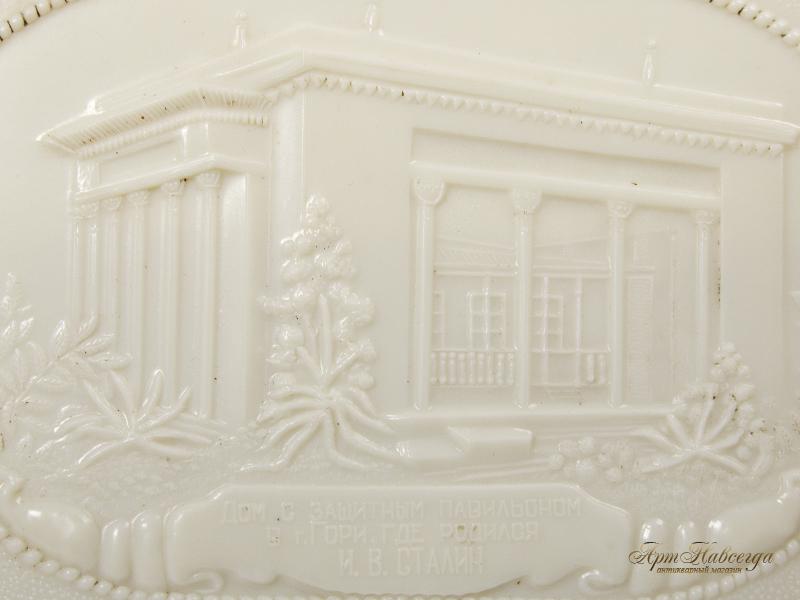 Шкатулка "Дом с защитным павильоном в г.Гори, где родился И.В.Сталин", изготовленная из пластмассы.