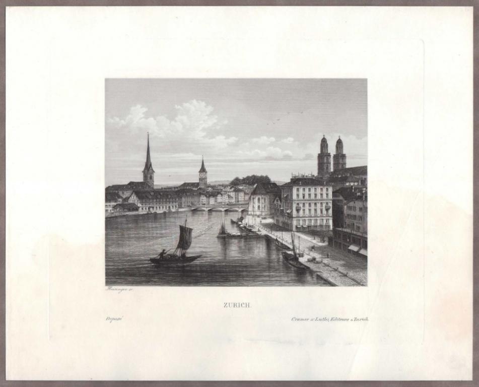 Антикварная гравюра на стали, отпечатана в Цюрихе, в хорошей сохранности, размер листа 33,3х26,6 см, размер оттиска 26,6х21,7 см.