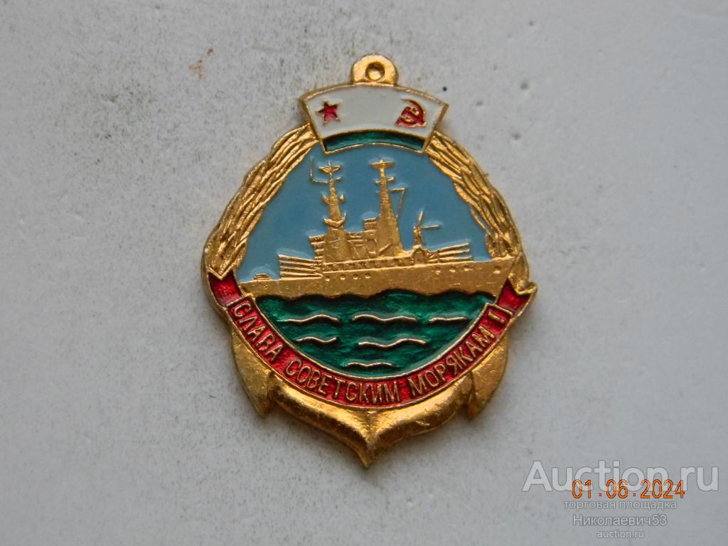 Значок Слава советским морякам, выпуск СССР, легкий металл,заколка, клеймо КЭМЗ. Состояние на скане.