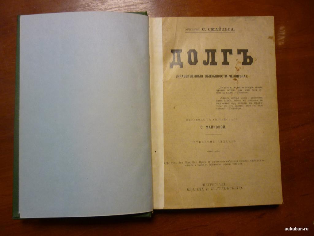 Вашему вниманию предлагается книга Смайлс "Долг нравственный обязанности человека" издание Губинского Петроград 1915 год. Состояние на фото блок крепкий страницы все 332 стр .