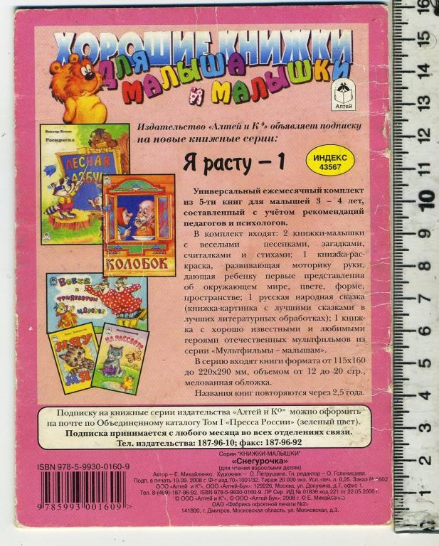 Издательство ООО Алтей и К - 2008 год. Художник О.Петрушина. Состояние на скане_все страницы целые, чистые. Мягкая обложка_8 стр. 25 гр. Д-3. |