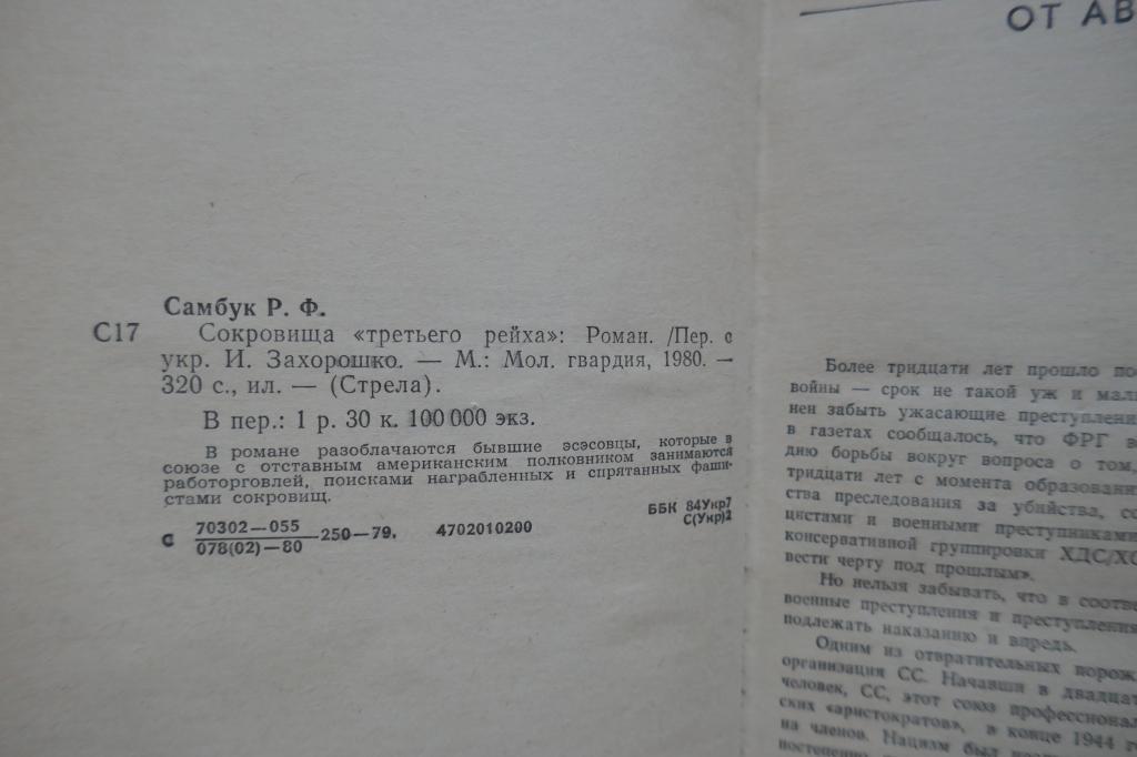 Сокровища "третьего рейха" Р.Самбук М.МГ.1980.320с.илл.,серия "Стрела"