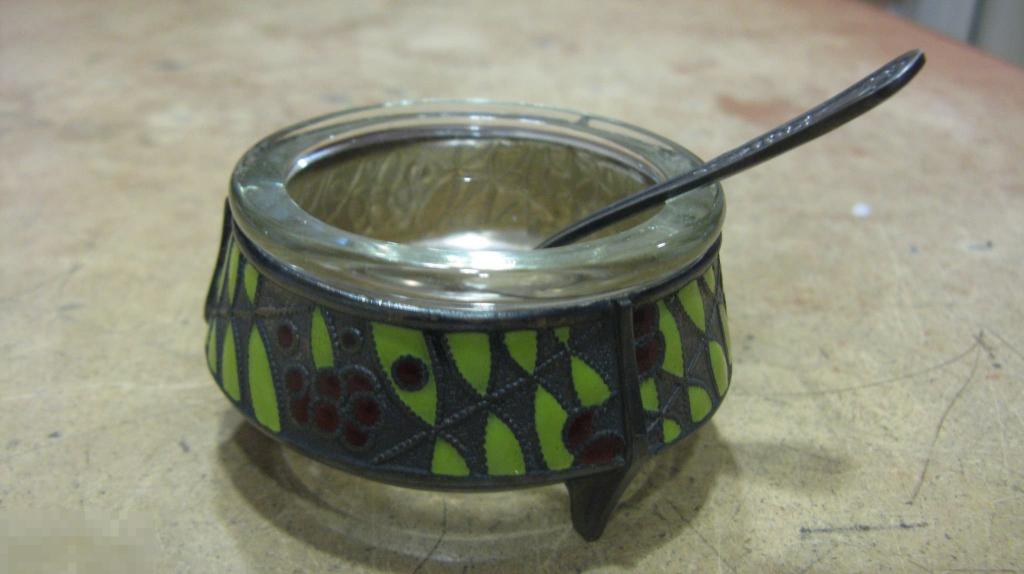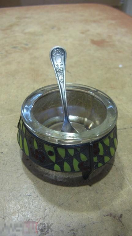 солонка мельхиор эмаль стекло высота 3,5 см диаметр 6,3 см состояние на фото