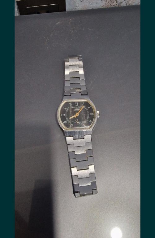 Комментарий: Металлические часы с чёрным циферблатом