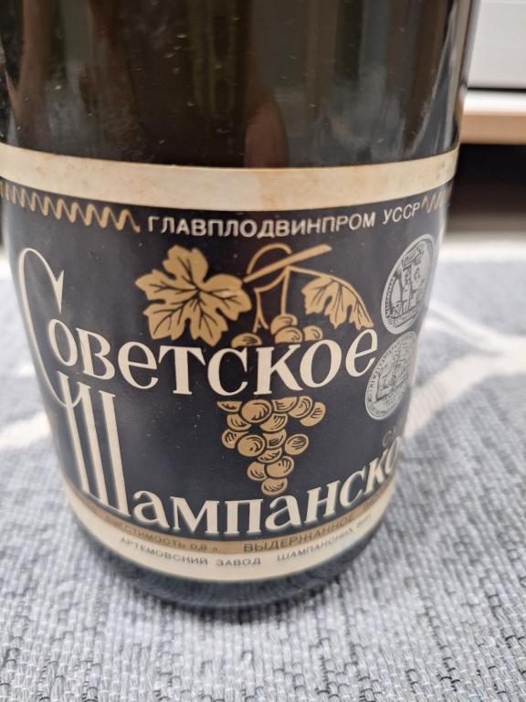 Советское шампанское Артемовского завода шампанских вин, закрытое, пробка не повреждена, вместимость 0.8 л, 1979 год