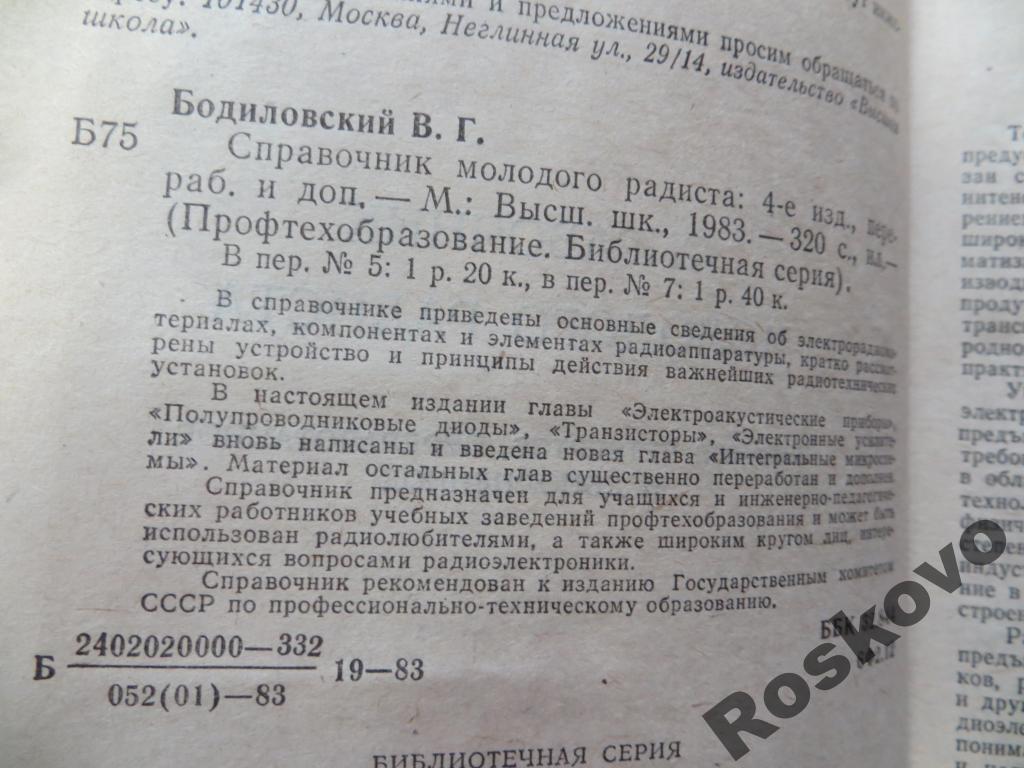 Купите "справочник молодого радиста 1983 БОДИЛОВСКИЙ " по цене 150a.Покупайте сейчас, чтобы не упустить эту отличную цену на “Auction.ru” или сделайте свое предложение продавцу.
