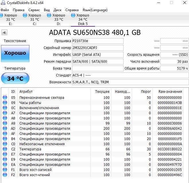 БУ отличное состояние. Практически без наработки.По программе CrystalDiskInfo - Хорошо .Проверен Викторией на запись. Покупая несколько лотов вы экономите на доставке!