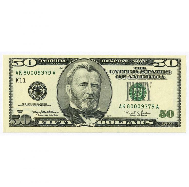 ФЕДЕРАЛЬНАЯ РЕЗЕРВНАЯ БАНКНОТА ("FEDERAL RESERVE NOTE"). ПОДПИСИ WITHROW - RUBIN. ФЕДЕРАЛЬНЫЙ РЕЗЕРВНЫЙ БАНК ДАЛЛАСА, ТЕХАС (K11). Состояние: AU
