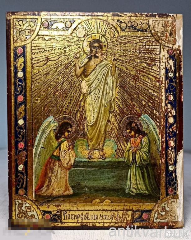 : Антикварная икoна 'Вoскресeние Xриcтовo' .
