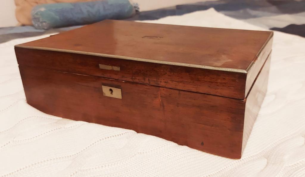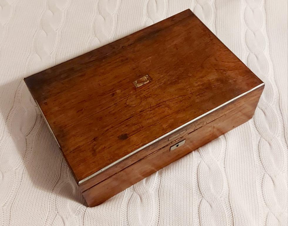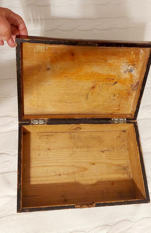 Старинная дореволюционная лакированная шкатулка. Размер 31х21х10 см. Ключ утерян.