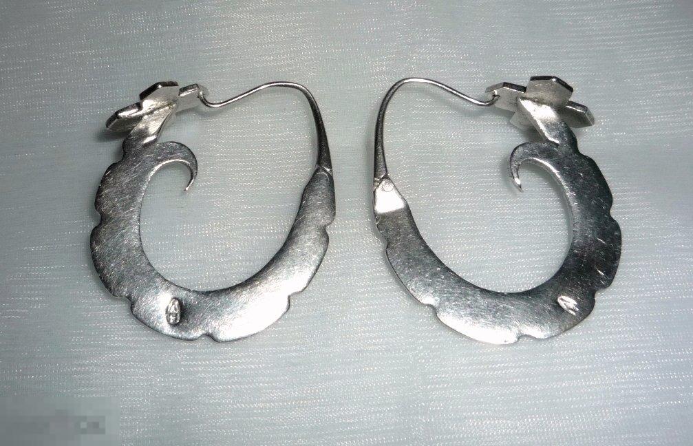 Старинные серьги из серебра 925 пробы. Ручная работа в единственном экземпляре. Пробы нет, есть клеймо мастера. Замки в порядке. размер 3,2х2,5 см. Вид на фото
