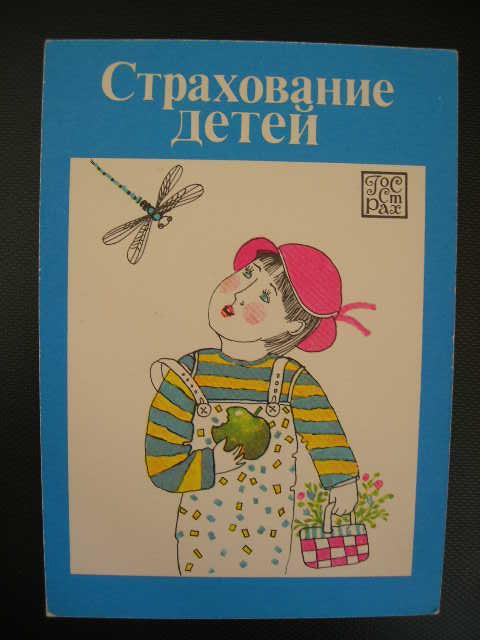 календарик-реклама "Страхование детей" ("Госстрах") - ребёнок с яблоком и стрекоза 1988