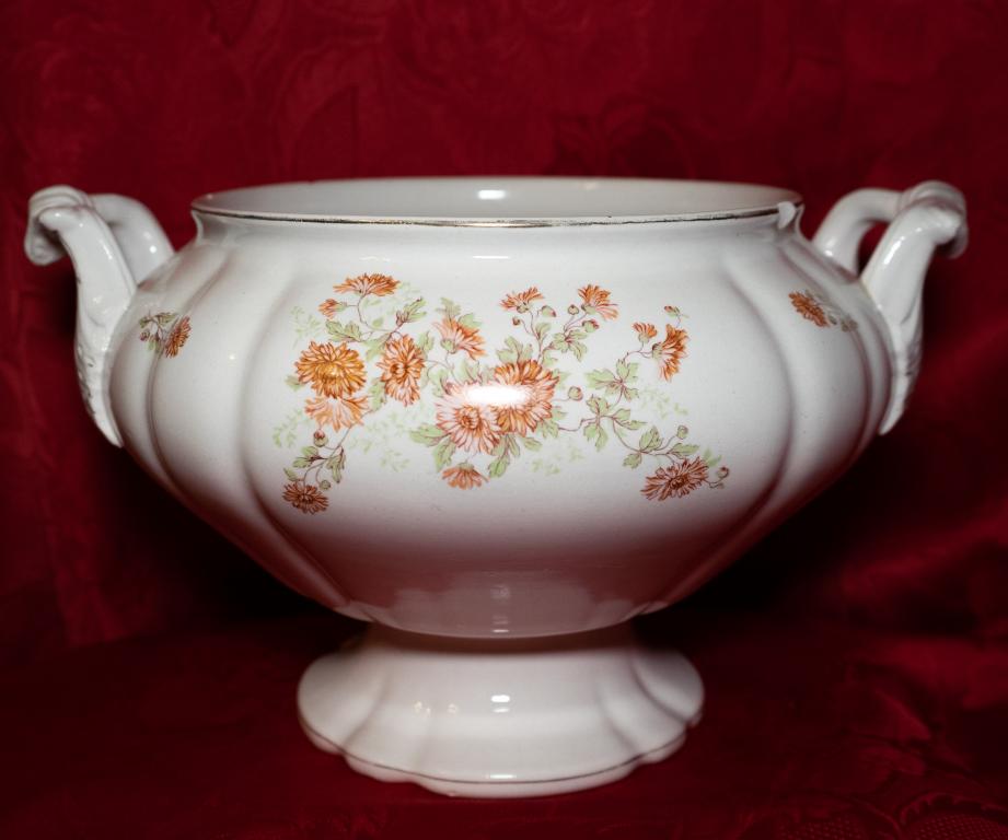Супница с хризантемами. Кузнецовский фарфор . объем ок 4 л. Есть небольшой скол. Можно использовать как вазон для цветов. Состояние как на фото. . При пересылке, гарантирую качественную упаковку.