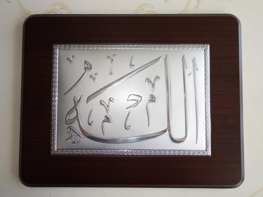 Сура "Аллах" фабрики"Clarte".Имеется небольшой скол с тыльной стороны.Размер(приблизительно):длина-33,5см,высота-16,5см,глубина-1,5см.