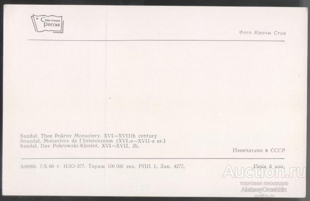 Купите "Суздаль Покровский собор" по цене 50a.Покупайте сейчас, чтобы не упустить эту отличную цену на “Auction.ru” или сделайте свое предложение продавцу.